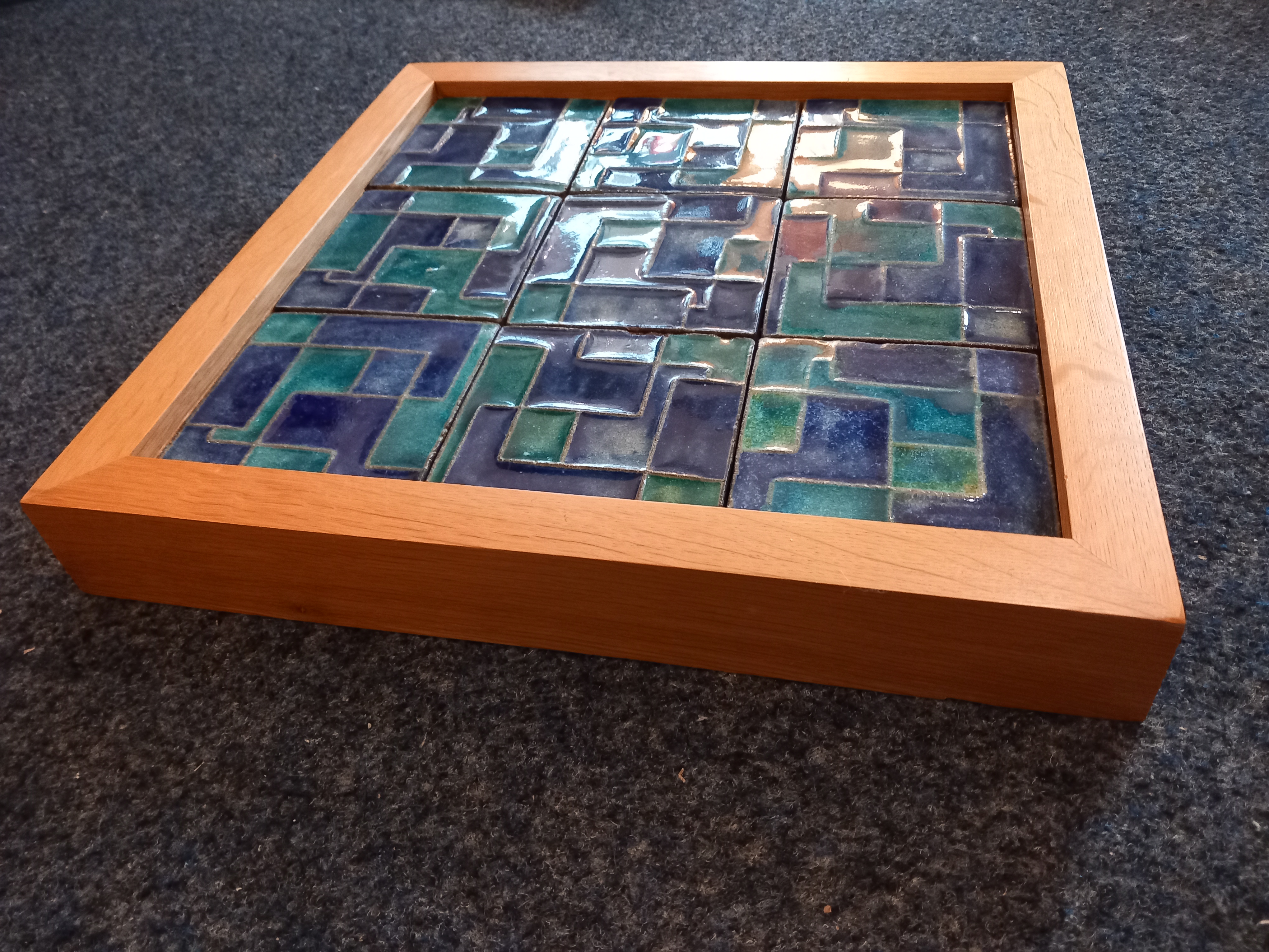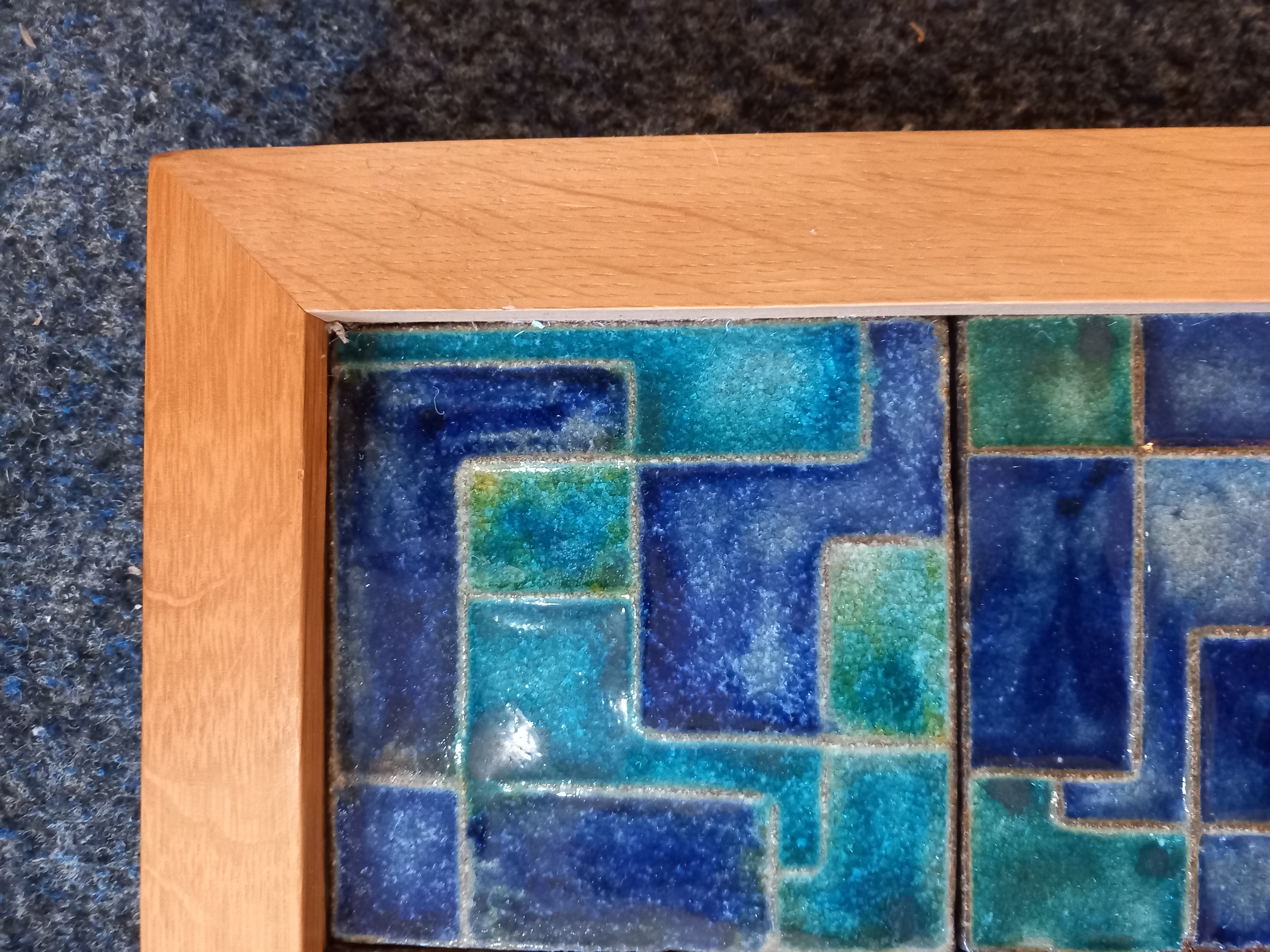 Großes Keramikbild 60er 70er Mosaikbild blau Kunstkeramik 70er