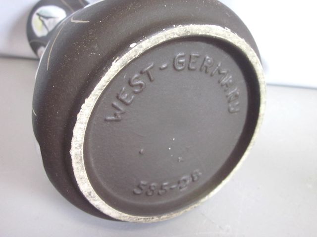 An Eduard Bay-vase with the popular decor Kongo - designed by Bodo mans in 1959. Marked underneath with moulded form number. Height 28 cm/ 11'. Minimal glaze grazes only underneath at the stand ring, apart from this in fantastic condition. Rare in this size and shape!